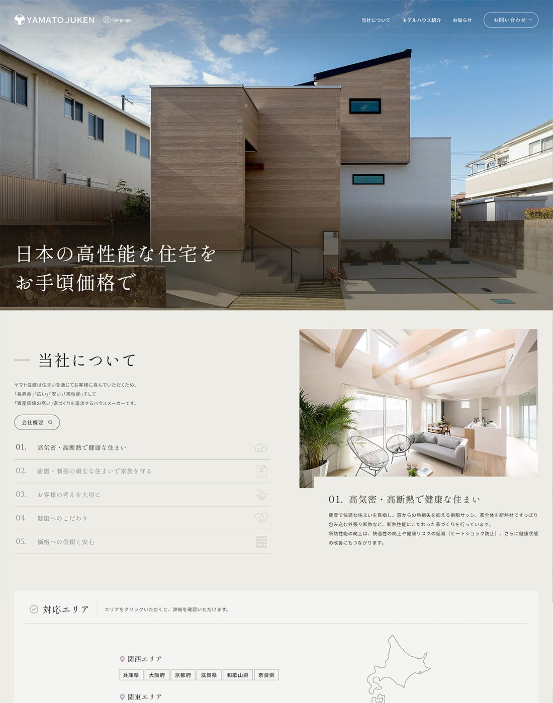 注文住宅や分譲住宅、不動産流通などの事業を営んでいる、ヤマト住建株式会社様の台湾向け特設サイトを制作しました。台湾の方からのお問い合わせが増えているとの背景から、今回サイト制作のご要望をいただきました。日本への移住を検討している台湾の方に向けて、日本の上質な暮らしが手に入るという印象を与えるサイトを目指しました。