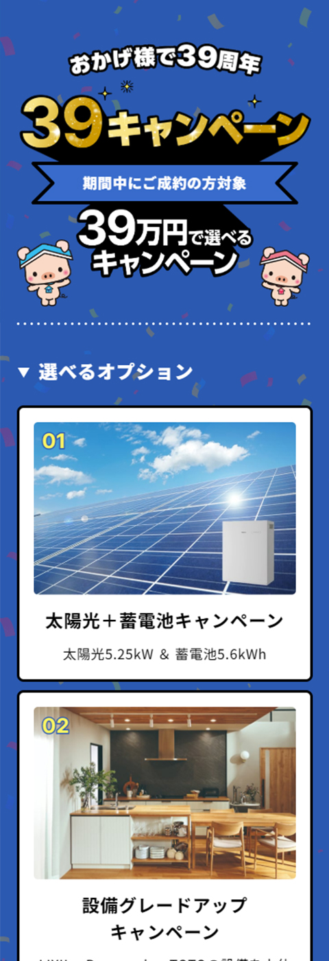 注文住宅や分譲住宅、不動産流通などの事業を営んでいる、ヤマト住建株式会社様の住宅サービスLPを制作しました。住宅購入を検討されている方々に向けて、お得なキャンペーンを開催していることをわかりやすく伝え、お問い合わせにつながるサイトを目指しました。