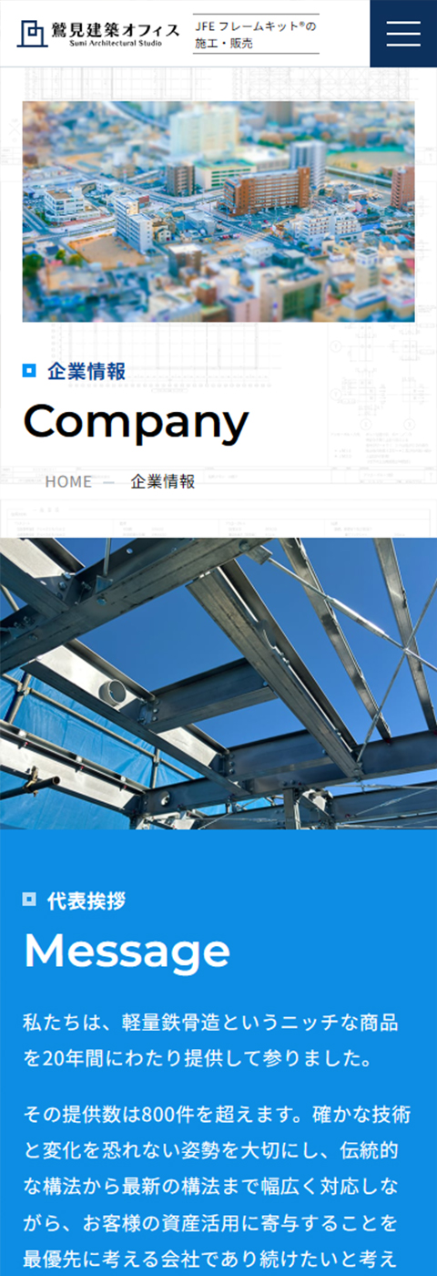 軽量鉄骨フレームの販売から施工までを一貫して手がける、株式会社鷲見建築オフィス様のコーポレートサイトをリニューアルしました。以前からサイトはお持ちでしたが、製品情報の充実と、名刺代わりとなるサイトとしての役割強化を図りたいとのご要望から、今回ご相談をいただきました。デベロッパーや施工担当者に向けて、現場の制約を超える施工力や企業姿勢を明確に伝え、「ここなら安心して任せられる」と感じてもらえる信頼感の醸成を目指しました。