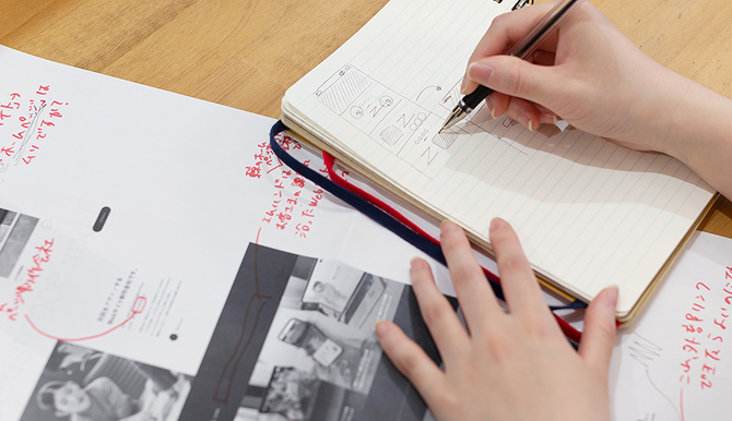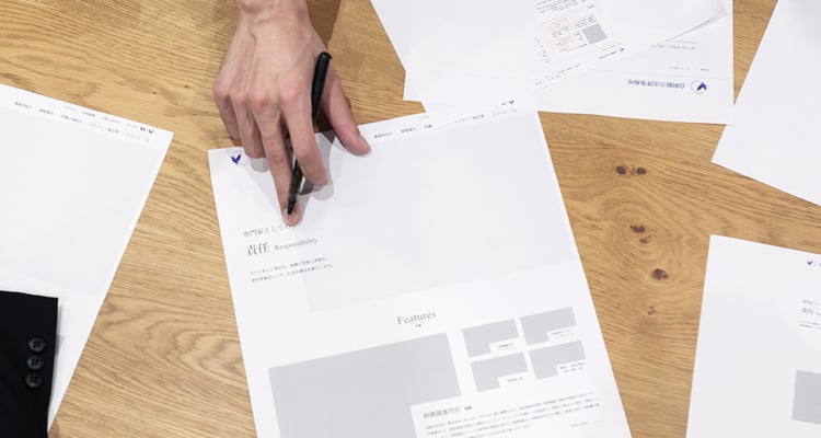 ターゲット、方向性、ゴールを明確化し、5名以上のディレクター・マーケターでワイヤーフレーム(デザインの設計図)のブラッシュアップを行います。多角的な視点からブラッシュアップをおこなうことで、担当者の力量に左右されることなく、一定のクオリティを担保することができます。
