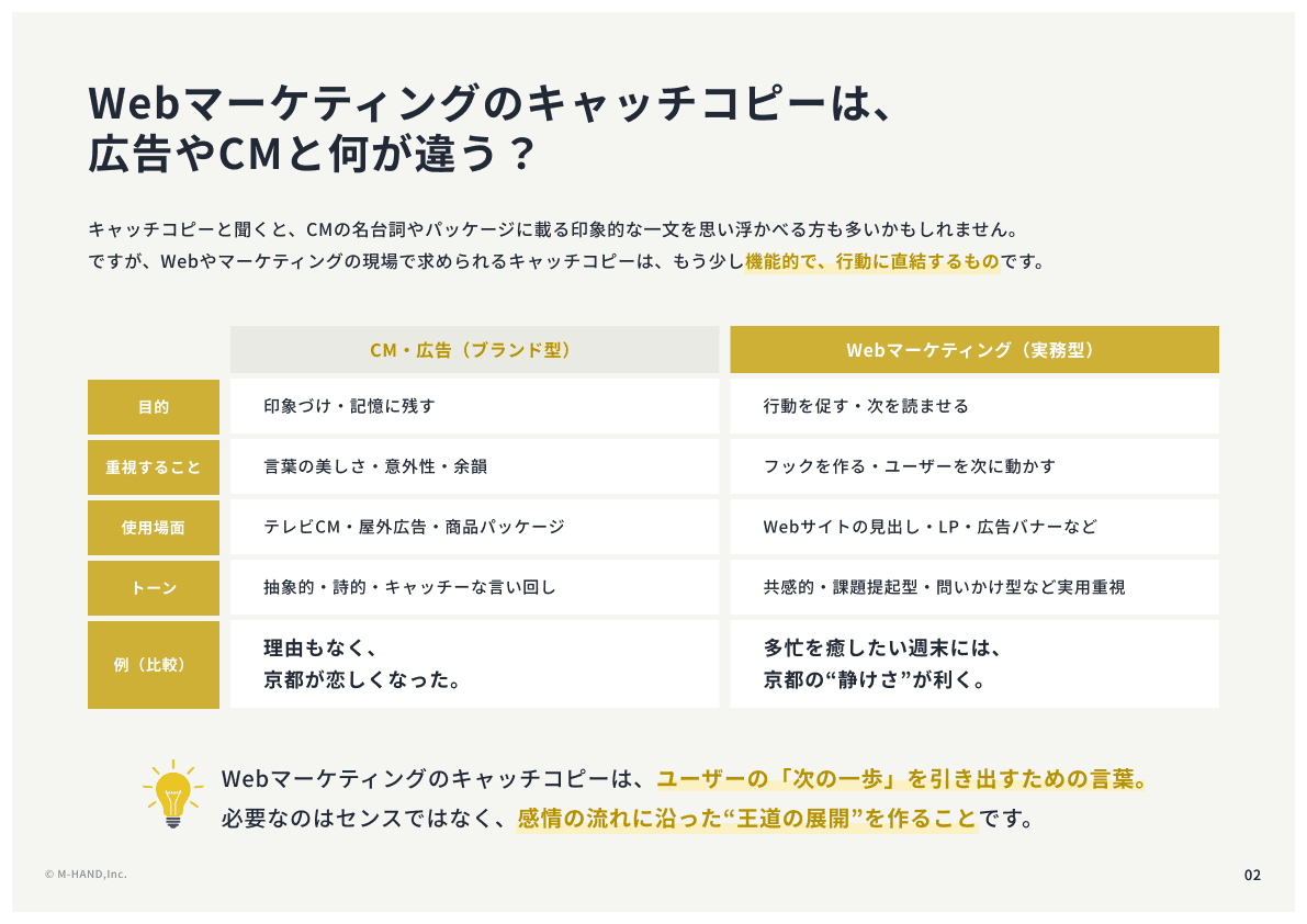 この資料では、すぐに取り入れられるキャッチコピー案の作り方と仕上げ方をご紹介します。