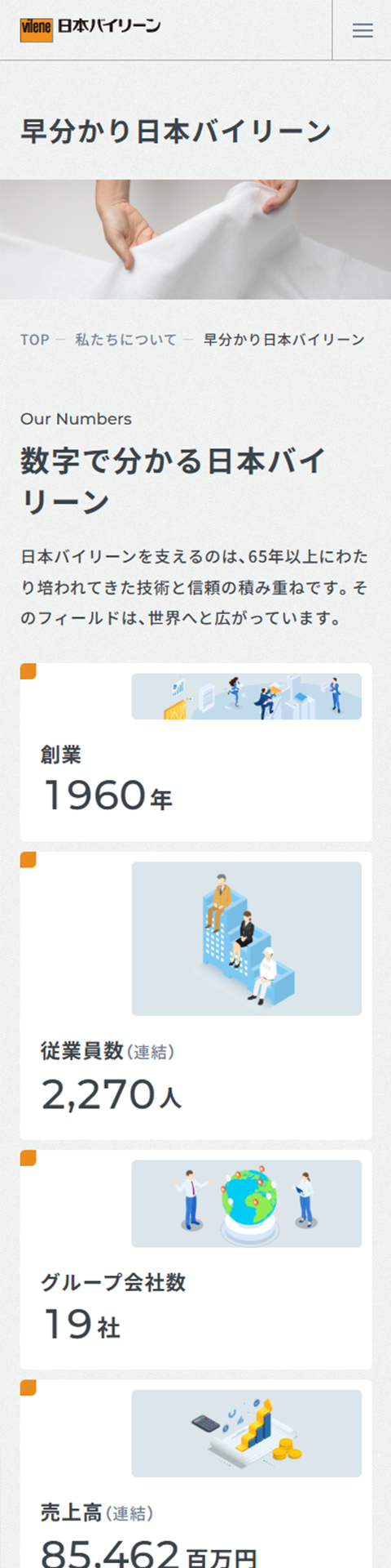 「未来を織りなす、不織布のリーディングカンパニー」をサイトのコンセプトとし、企業の誇りと未来への強い意志を、ダイナミックかつ繊細に訴求することを目指しました。「早分かり日本バイリーン」では「数字で分かる日本バイリーン」をはじめ、ミッションや事業内容などをポイントを絞って掲載。さらに、導線整理や製品検索機能の強化によってユーザビリティの改善を図り、企業への信頼感を高めるとともに、ユーザーが必要な情報にスムーズにたどり着けるよう配慮しました。