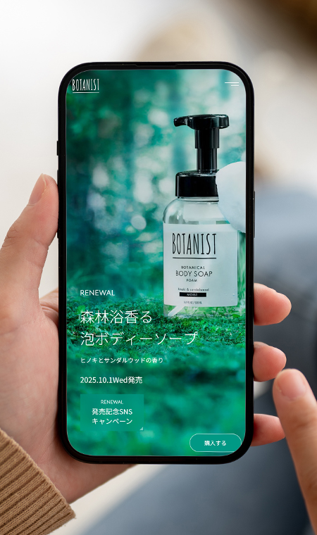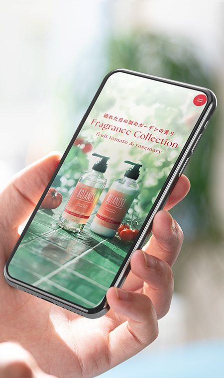 株式会社I-ne様のライフスタイルブランド「BOTANIST」の夏限定特設サイトを制作。夏の朝のような瑞々しさとアートの世界観を融合し、ブランドの新たな一面を表現しました。トマト×ローズマリーという「香りの意外性」をフックに、ユーザーの感性に深く訴えかけるブランド体験の提供を目指しました。
