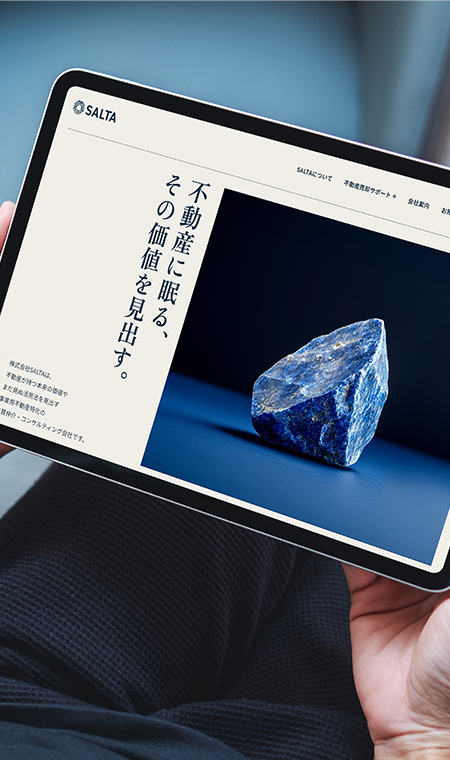 不動産の売買仲介やコンサルティングを行う株式会社SALTA様のコーポレートサイトを制作しました。30年の実務経験と「至誠勤倹」の精神を軸に、オーナー様の信頼に応える高い提案力と誠実さを一貫して表現しました。専門的な知見と真摯な姿勢を伝えることで、大切な資産を安心して託せるプロフェッショナルとしての姿を描いています。