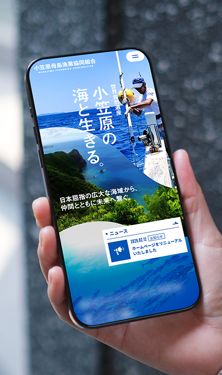 小笠原母島で漁業を営んでいる、小笠原母島漁業協同組合様のコーポレートサイトをリニューアルしました。漁師になりたいと考えている若年層などに向けて、小笠原の海の豊かさや漁師の仕事に興味を持ってもらえるサイトを目指しました。